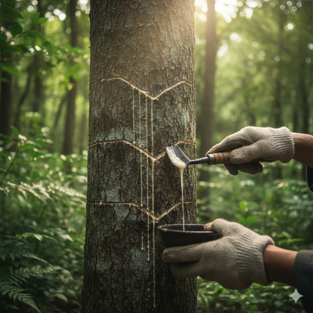 방법: 나무껍질에 상처를 내고 흘러나오는 수액을 긁어 모음