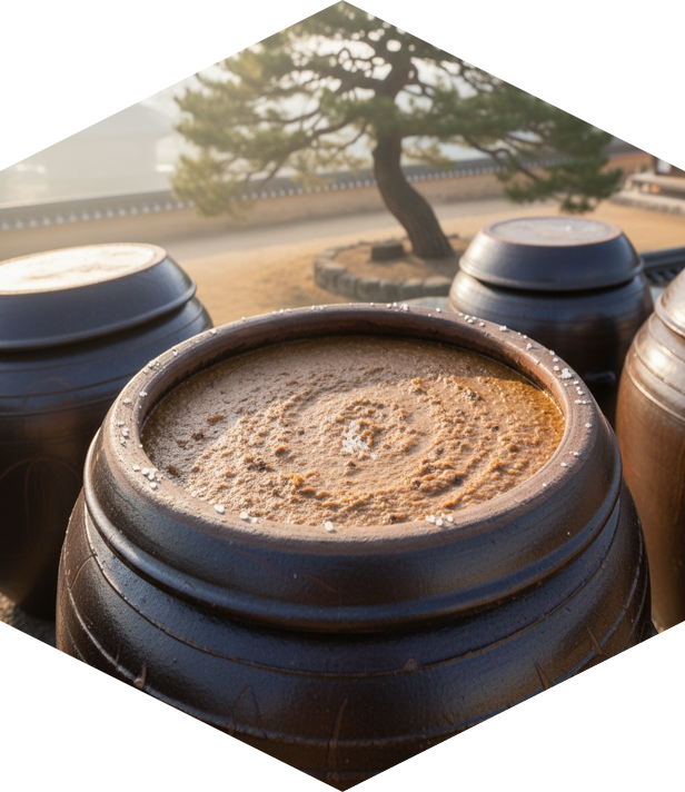 장독대에 햇살이 비칠 때, 한국인은 압니다. 오늘도 미생물이 일하고 있다는 것을. 된장이 조금 더 익어가고 있다는 것을. 내일의 맛이 오늘보다 깊어질 것이라는 것을.